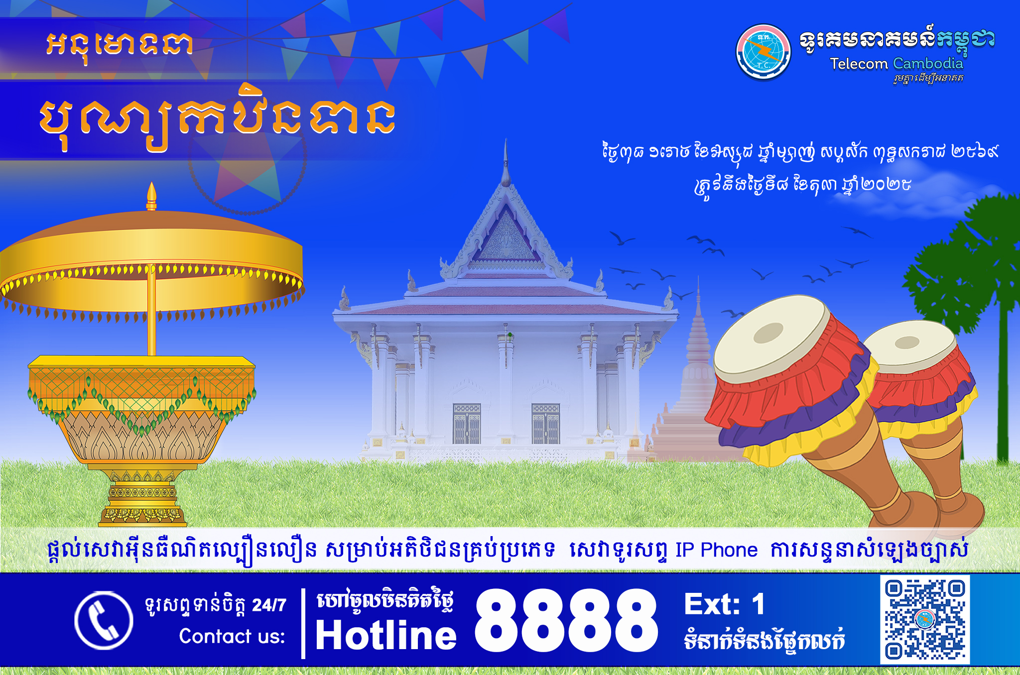 ទូរគមនាគមន៍កម្ពុជា សូមប្រសិទ្ធពរជ័យ សិរីសួស្តី ជ័យមង្គល បវរមហាប្រសើរ ក្នុងឱកាសបុណ្យចូលឆ្នាំថ្មី ប្រពៃណីជាតិខ្មែរ