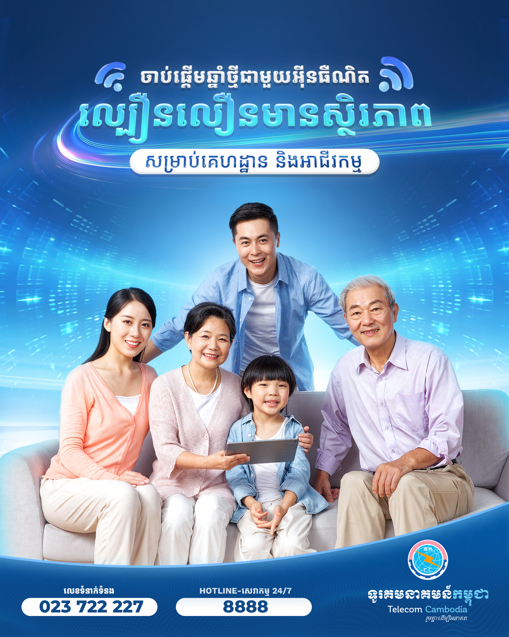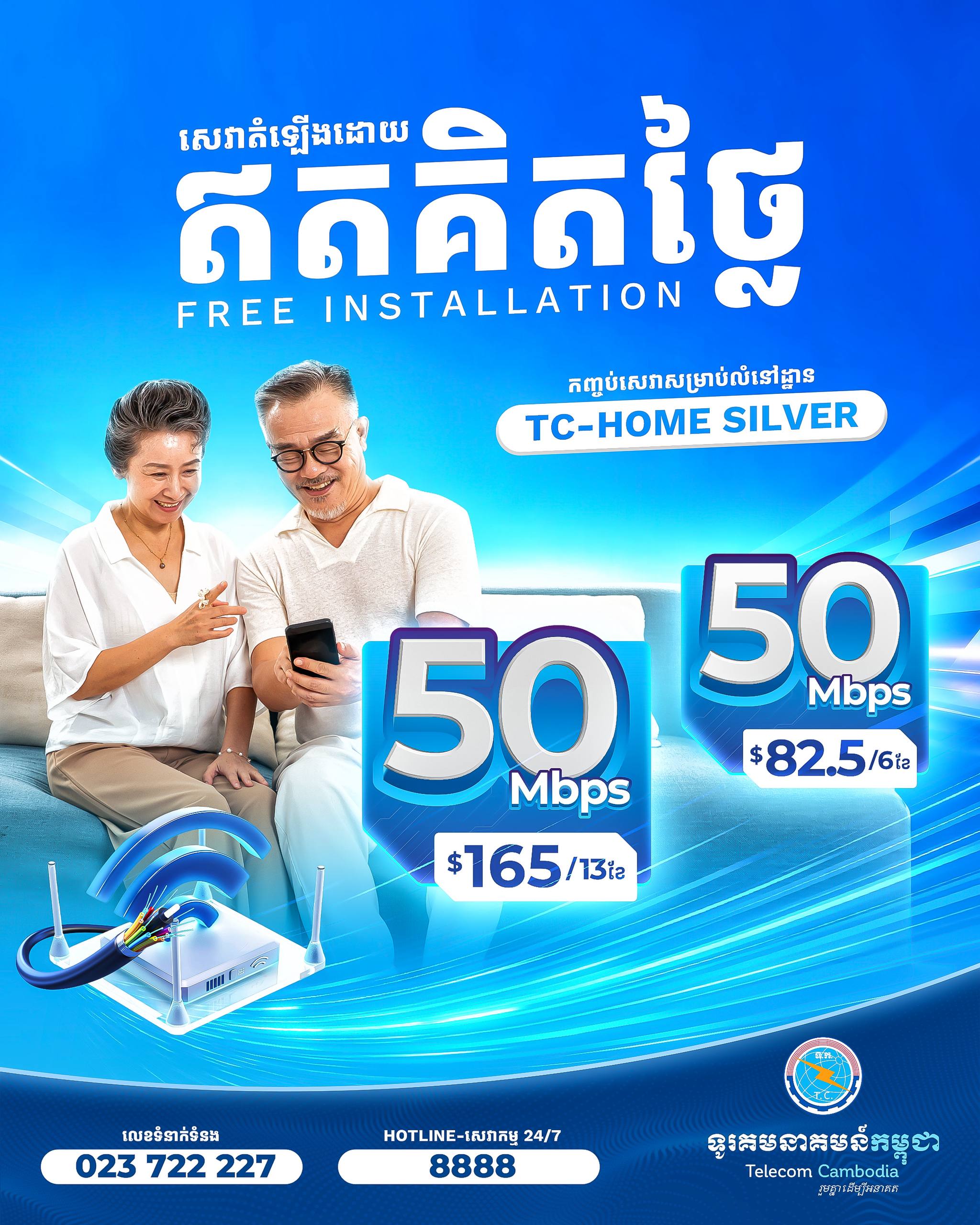 សូមស្វាគមន៍មកកាន់ទូរគមនាគមន៍កម្ពុជាដែលជាអ្នកផ្តល់សេវាដែលអាចទុកចិត្តរបស់អ្នកសម្រាប់អ៊ីនធឺណិតល្បឿនលឿននិងសេវាកម្មទូរស័ព្ទអចល័តគ្មានការរអាក់រអួលយើងផ្តល់ជូននូវដំណោះស្រាយការតភ្ជាប់រហ័សដែលអាចទុកចិត្តបាន និងគុណភាពខ្ពស់ដើម្បីរក្សាទំនាក់ទំនងឱ្យអ្នកជានិច្ចក្រុមអ្នក ជំនាញរបស់យើងធានាថាបទពិសោធន៍ របស់អ្នកគឺរលូន និងគ្មានការរំខាន។