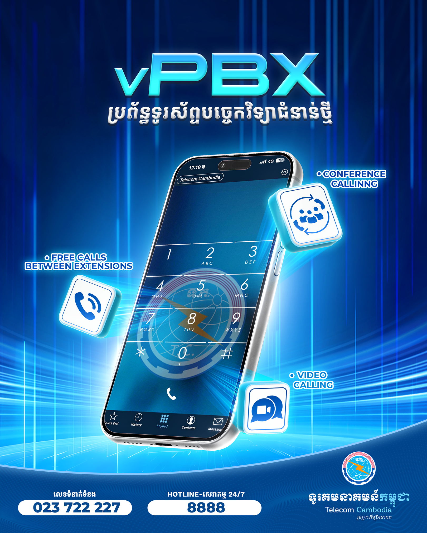 Virtual PBX ជាទូរស័ព្ទបច្ចេកវិទ្យាជំនាន់ថ្មី បច្ចេកទេសទំនើប ស័ក្តិសមសម្រាប់ក្រុមហ៊ុន ស្ថាប័នរដ្ឋ អង្គការ
